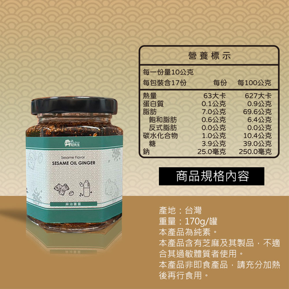 ◆商品名稱:台灣製造 【丹尼先生】 麻油薑薑 170g 麻油 乾薑 麻油薑片 薑母鴨 麻油腰子 罐頭