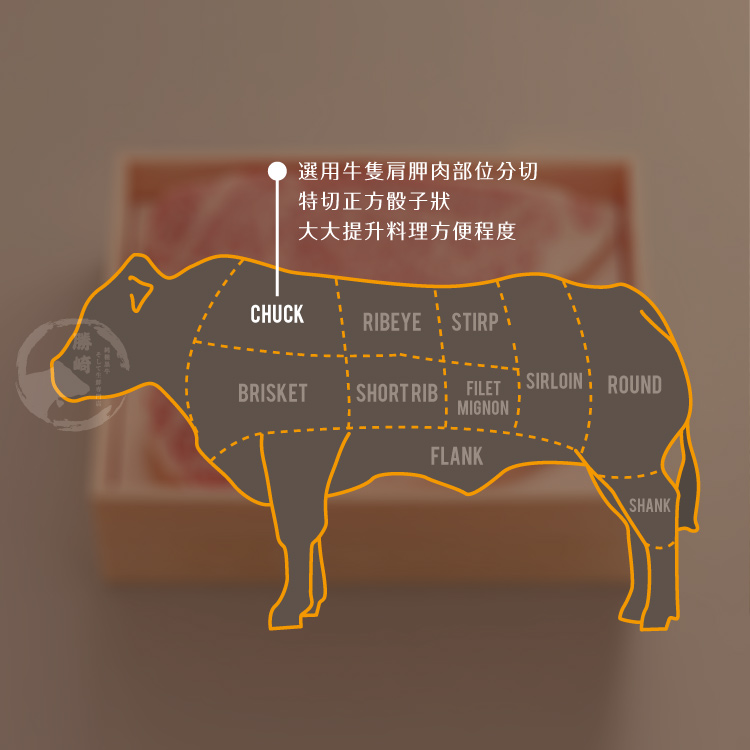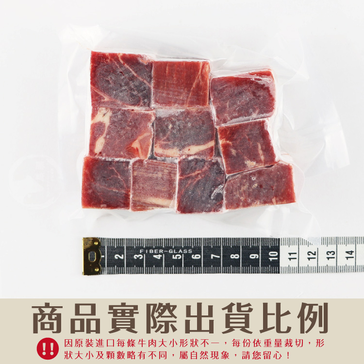 一、選用牛隻肩胛肉部位分切,特切正方骰子狀,大大提升料理方便程度!