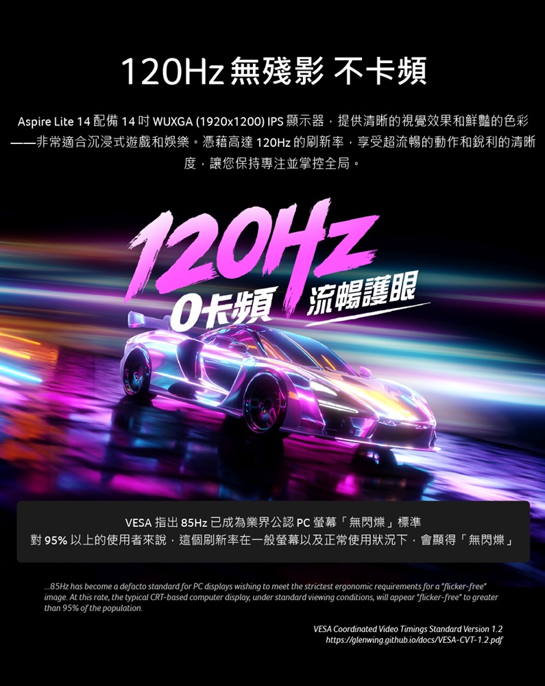 尺寸/規格:14" 16:10/IPS/120Hz/霧面