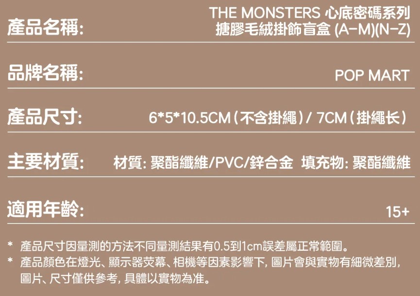 ✦商品名稱:THE MONSTERS 心底密碼系列 - 字母掛件盲盒(A-M)衍生品周邊