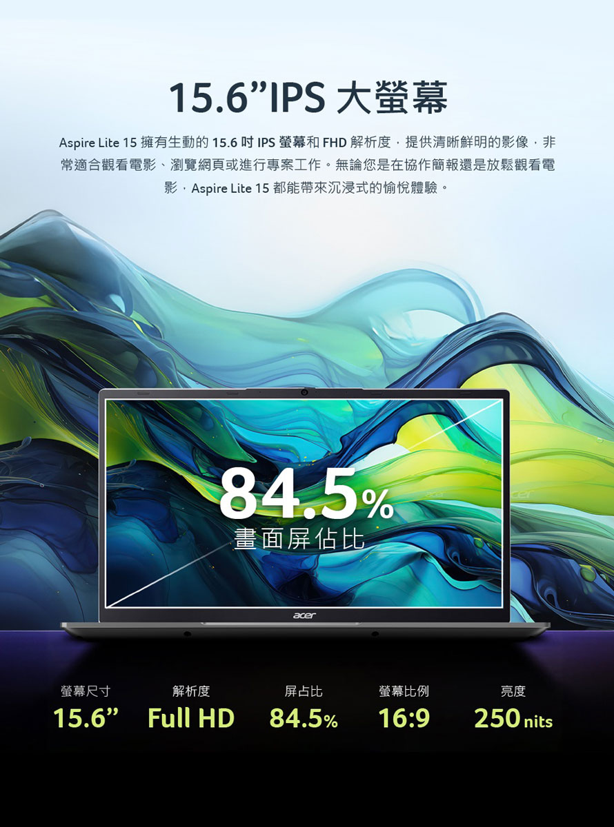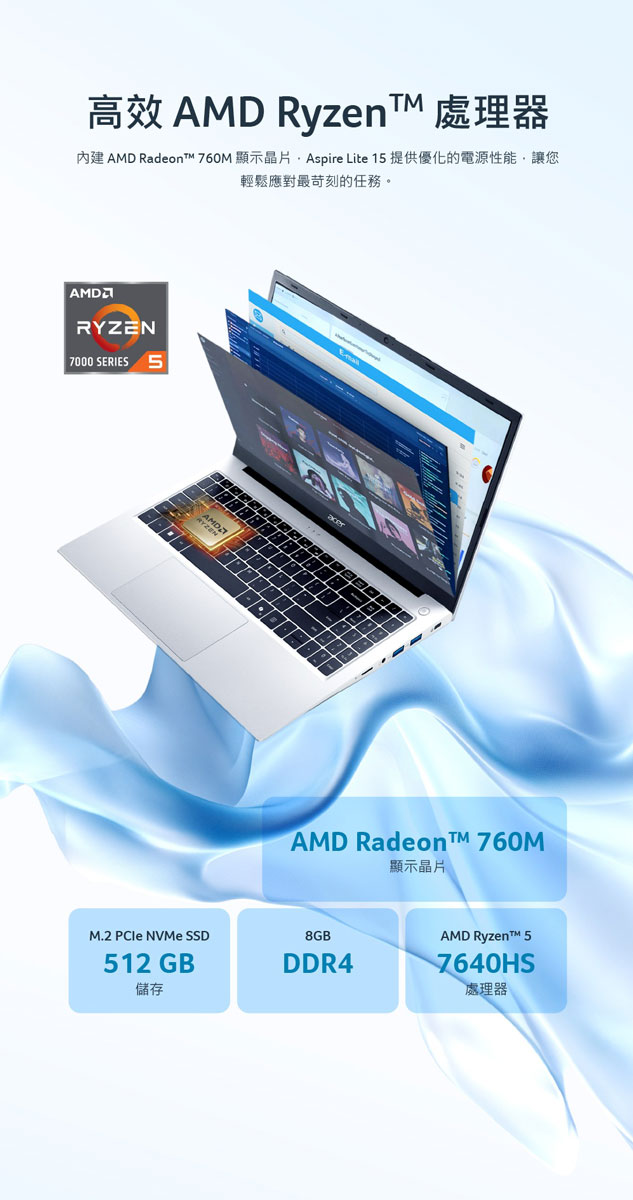 Acer宏碁 Aspire Lite AL15-63P-R2KS R5-7640HS/8G/512G/效能筆電