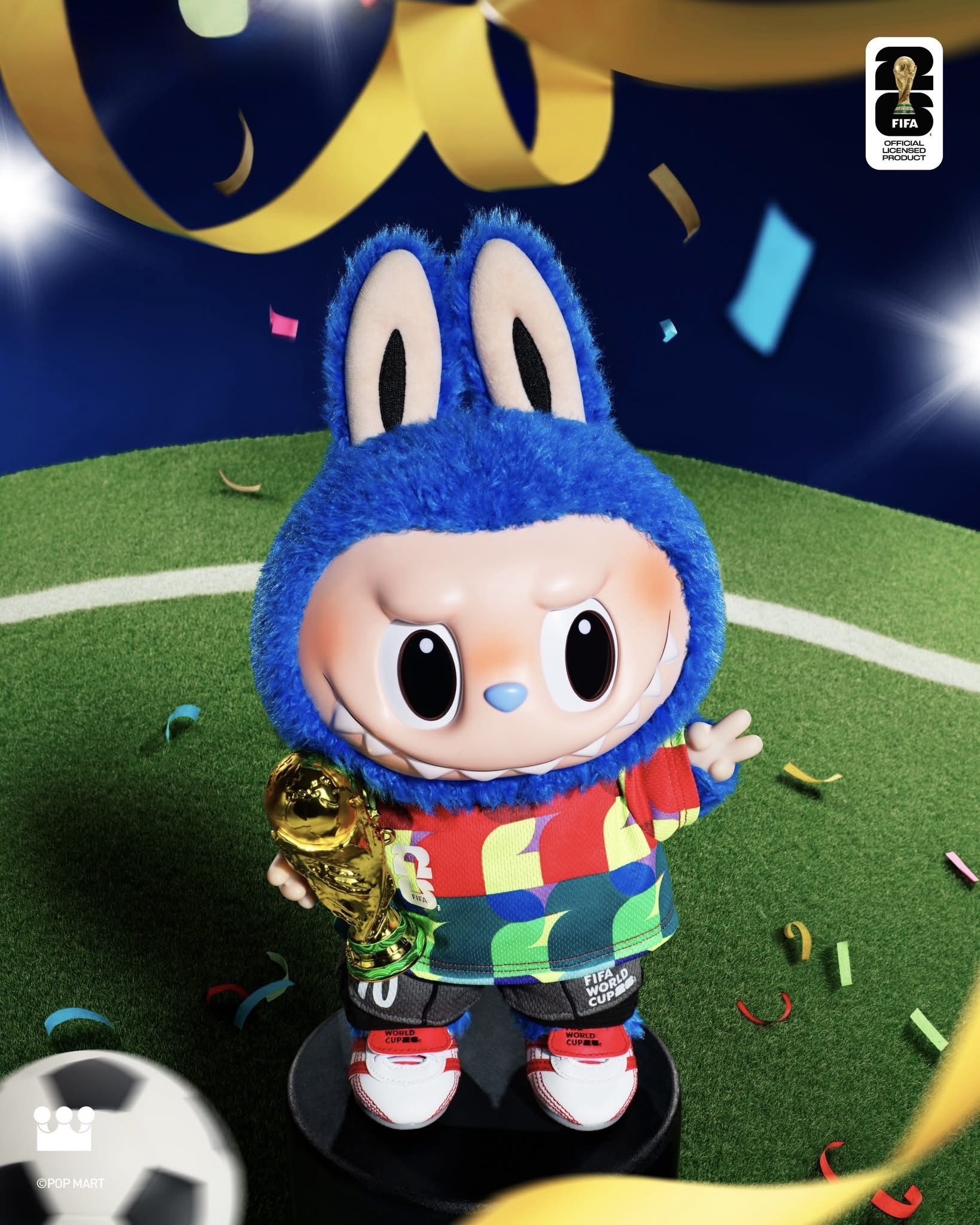 這款 THE MONSTERS × FIFA 系列 - Catch the Win 搪膠毛絨公仔(俗稱 Labubu FIFA 大娃)是 POP MART 與 FIFA 世界盃聯名推出的限量商品。