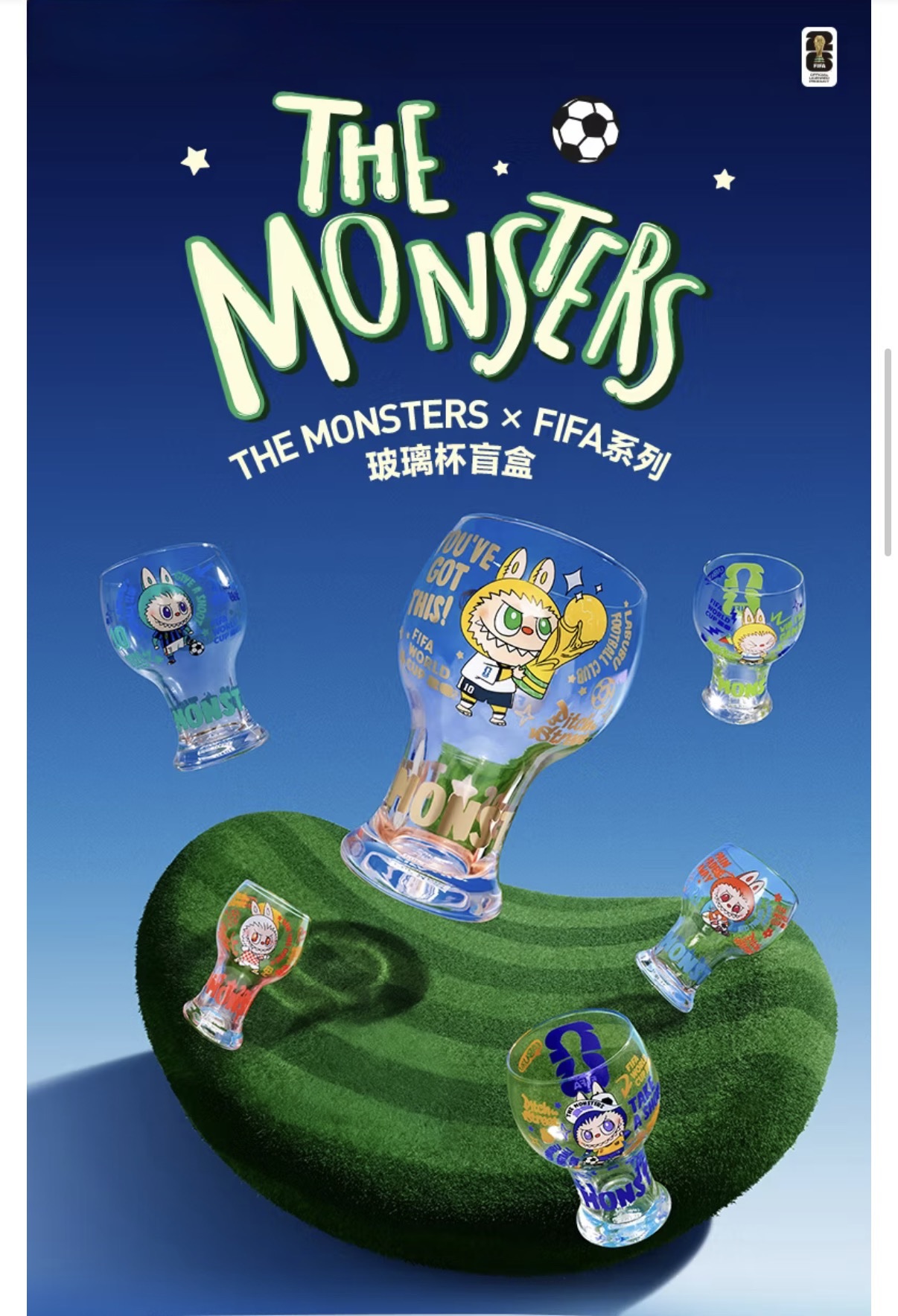 THE MONSTERS × FIFA 系列 - 玻璃杯盲盒 是該聯名系列中的生活週邊衍生品,將足球場上的經典瞬間轉化為實用的玻璃杯設計。