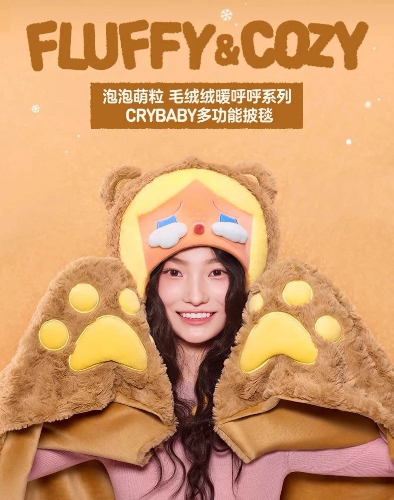 POPMART 泡泡瑪特「泡泡萌粒 (POP BEAN)」毛絨絨暖呼呼系列 (Fluffy & Cozy Series) 多功能披毯,是該系列中實用性最高的大型周邊,專為冬日居家或辦公室保暖設計。