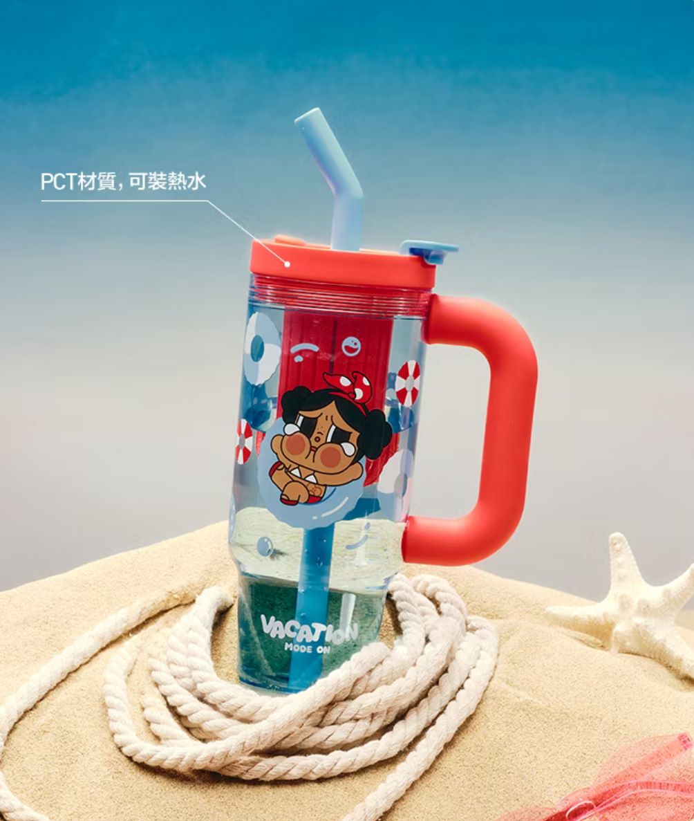 POPMART 泡泡瑪特 CRYBABY「Vacation Mode On」(渡假系列)吸管杯,是該系列中實用度最高且最具「夏日氛圍」的周邊單品。它將哭娃的憂傷萌感與沁涼的飲品容器結合,是非常受歡迎的