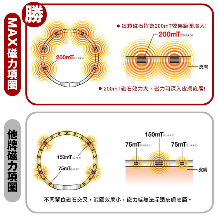 本磁力貼是日本最大的磁通密度為200mT(Millitesla)是日本處方最高等級的磁力,所以效果好喔!