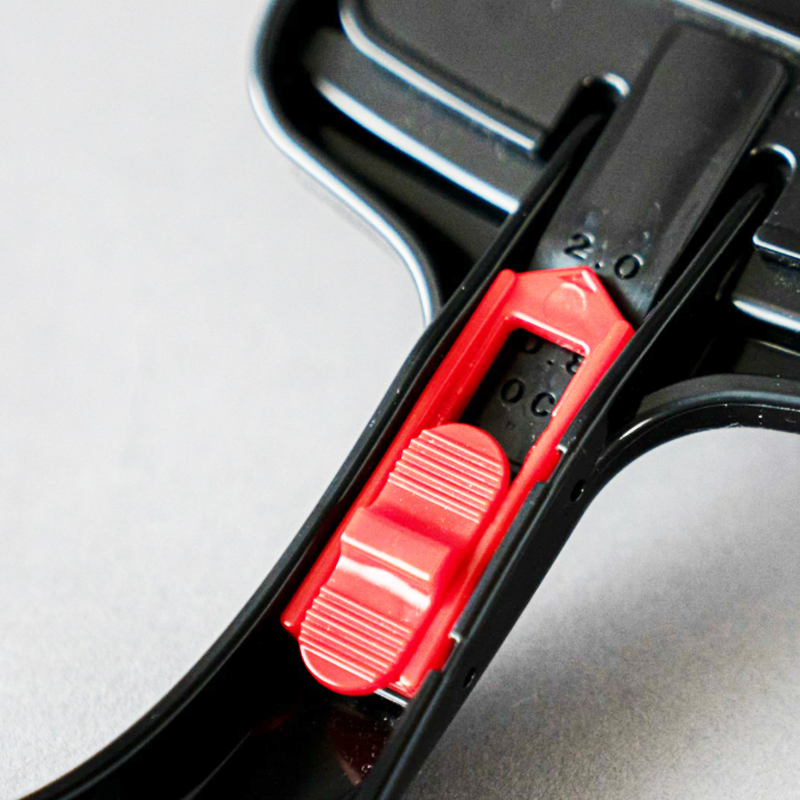 可使用開關輕鬆手動調整厚度,厚度選定後即可鎖住固定這個厚度使用。