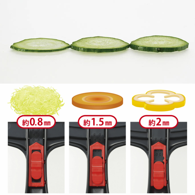 這款專業級蔬果刨片器可以切成三種不同的厚度(0.8mm/1.5mm/2mm)以適用各種菜餚。