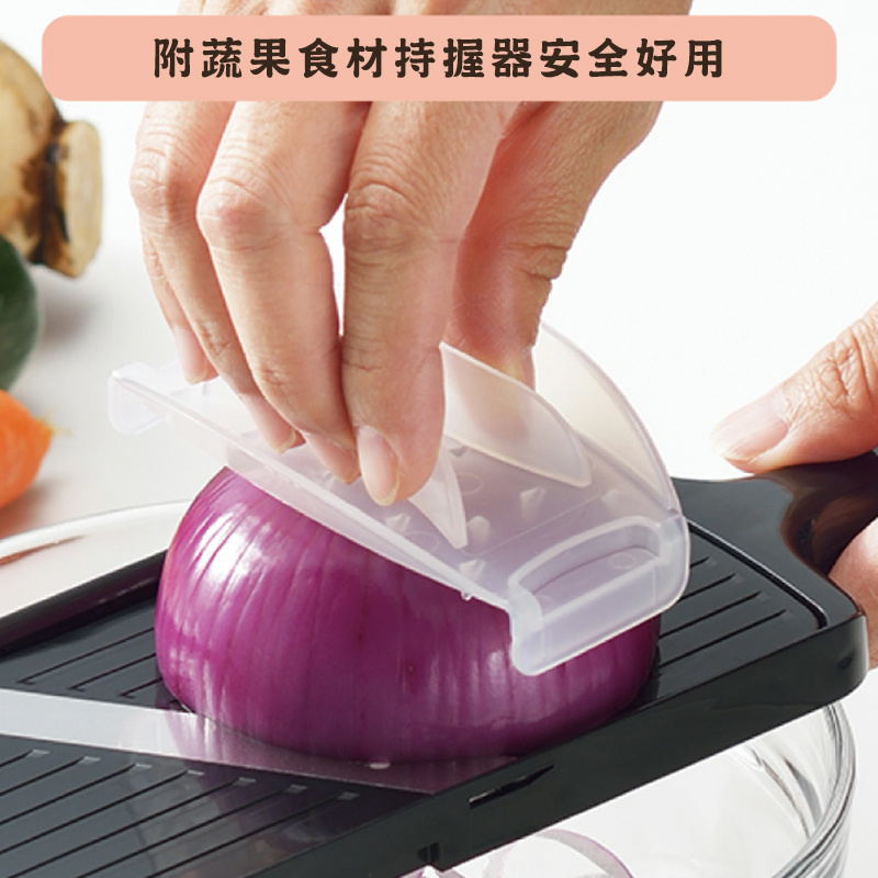 為了方便安全的持蔬果操作刨片,附有蔬果持握器,可讓您安全使用刨片器。