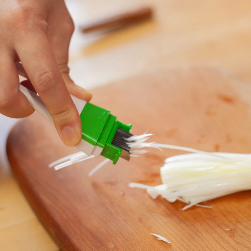 這款蔥絲專用刨器直接把蔥刨成絲,只需再用菜刀裁斷需要的尺寸就可以羅~