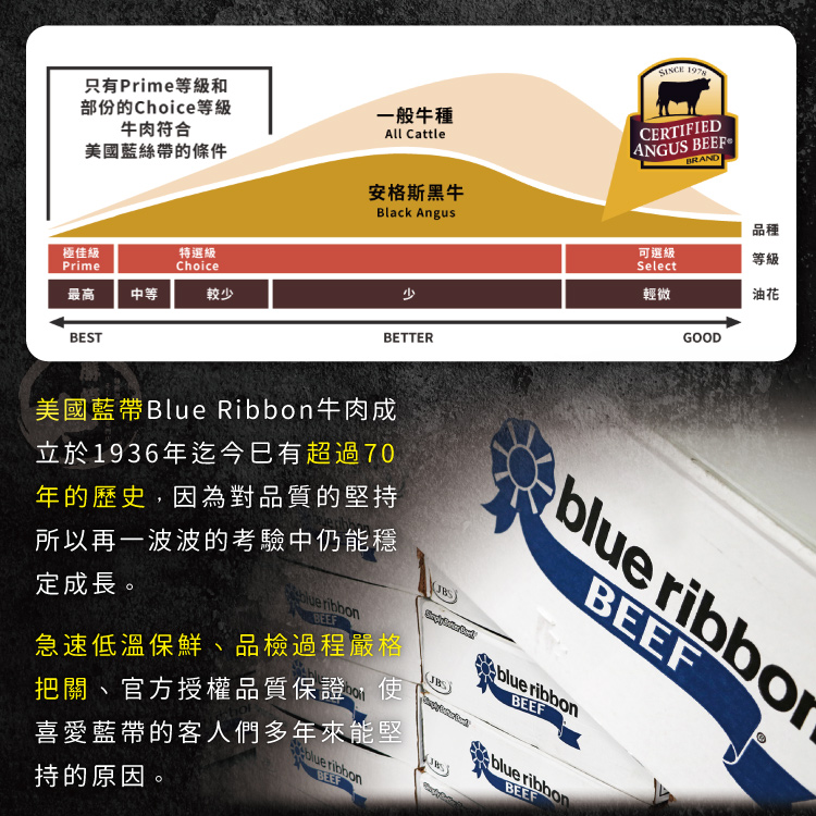 三、嚴選來自美國猶他州藍帶優質品牌,優質安格斯黑牛,以天然優質榖物飼養,不添加任何人工抗生素!
