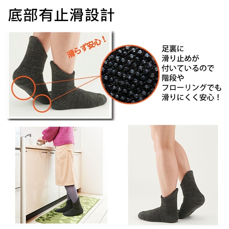 底部有防滑設計所以可以當作室內襪直接穿上,不需要再穿室內鞋!