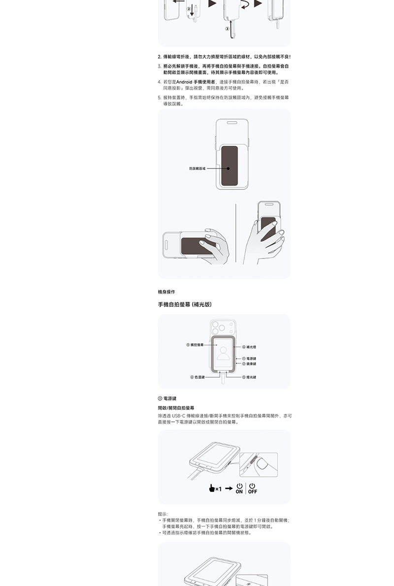 顏色 自拍螢幕:白色、保護蓋:淺灰色