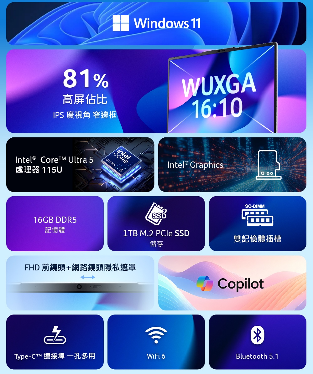 CPU:Intel® Core™ Ultra 5 processor 115U