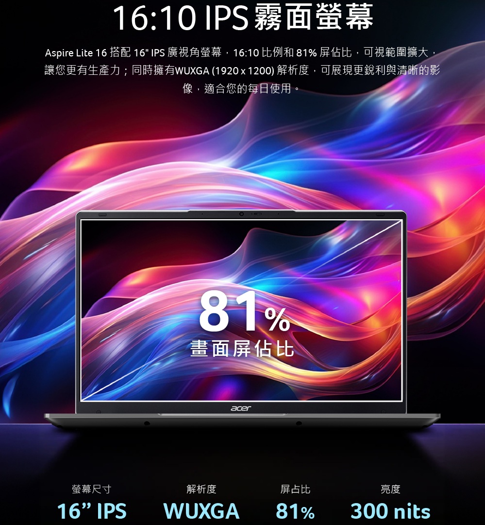 尺寸/規格:16" 16:10/IPS/霧面/LED背光