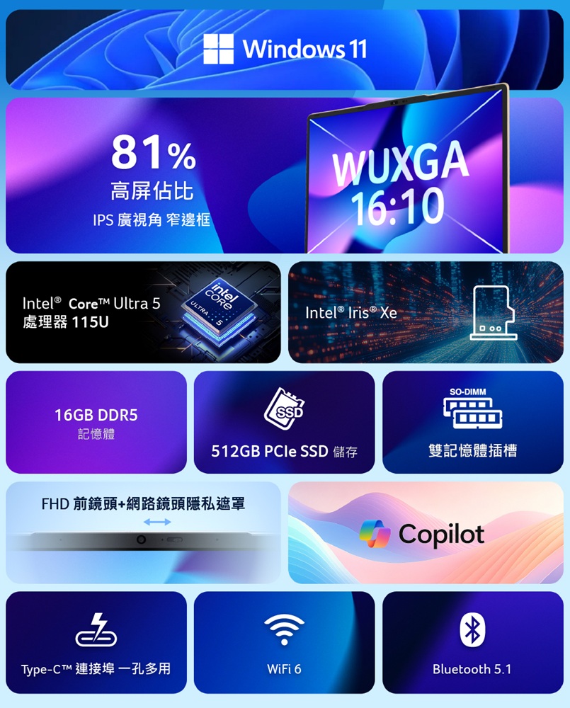 CPU:Intel® Core™ Ultra 5 processor 115U