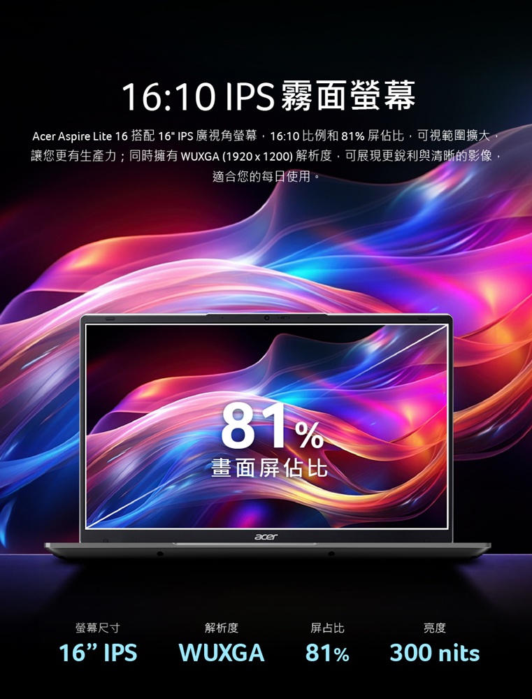 尺寸/規格:16" IPS/16:10/霧面/LED背光