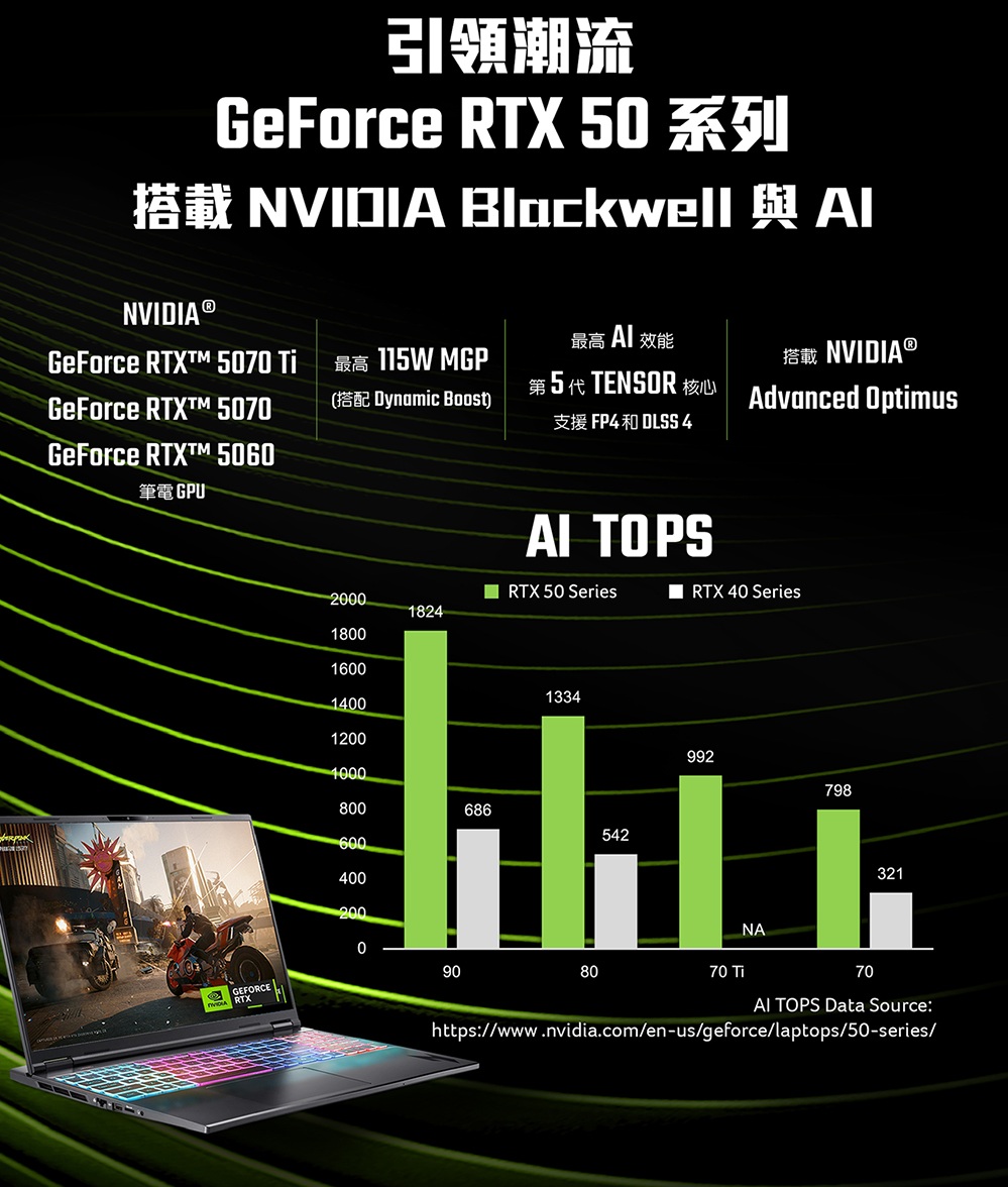 顯示晶片:NVIDIA® GeForce RTX™ 5070