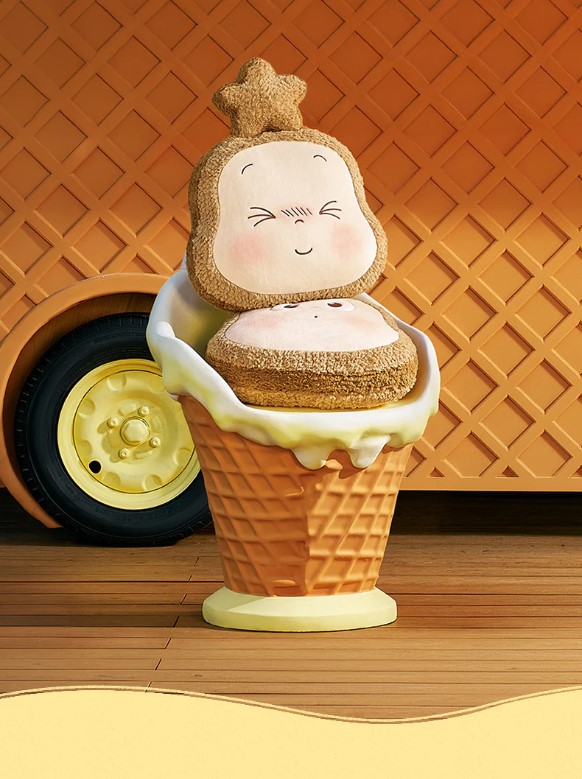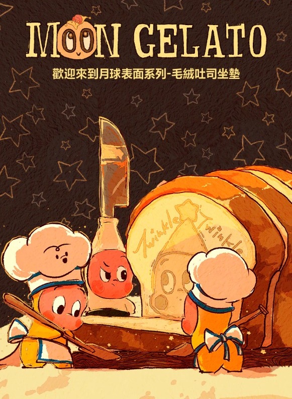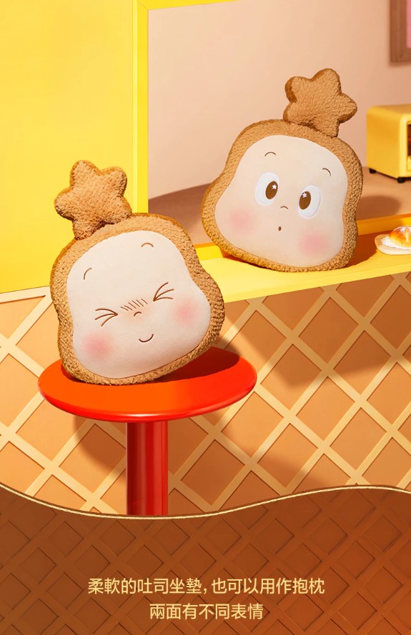 這款 「毛絨吐司坐墊」「歡迎來到月球表面」系列中最具居家實用性的單品。它將星星人融入香噴噴的吐司造型中,既是軟萌的裝飾公仔,也是舒適的靠墊。